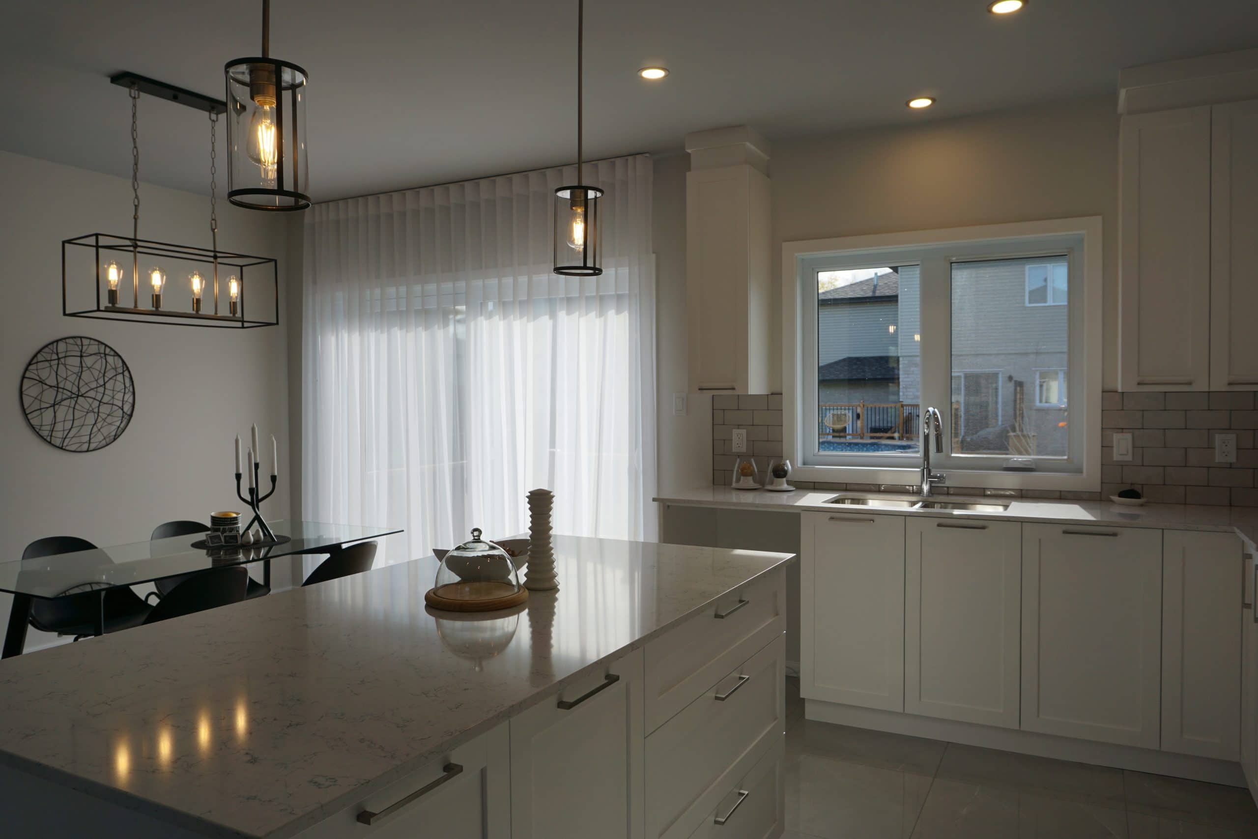 Cette maison modèle (Espresso II) : Les éléments de base sont sobres avec touche décorative éclatée! De façon générale, on doit créer la base de la décoration avec des éléments sobres et la touche finale plus éclatée de sorte qu’il est moins couteux de changer les éléments décoratifs au gré de nos humeurs et des tendances.